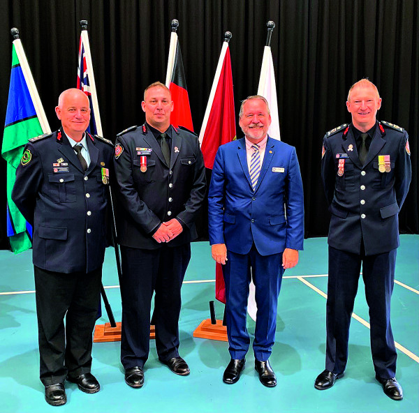 The RFS members were presented with National Medals and Clasps, Queensland Fire and Emergency Services Medals and Clasps, Diligent and Ethical Service Medals and Clasps and National Emergency Medals.