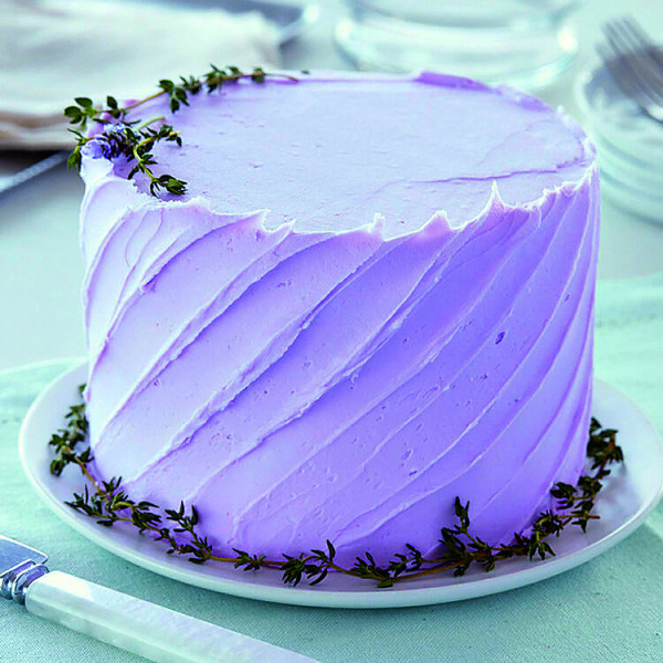 Pour over the cake and decorate with fresh lavender.