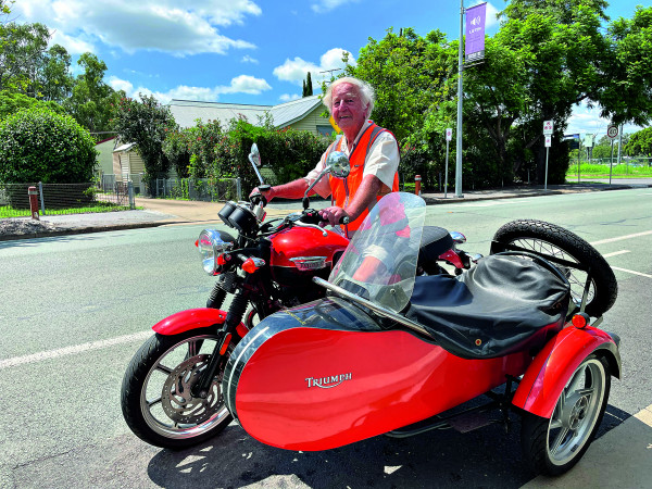 RACEVIEW resident Allan Harvey set out to enjoy the open air on his 2011 Triumph motorcycle recently and arrived in Rosewood ready to have a chat with passers by.