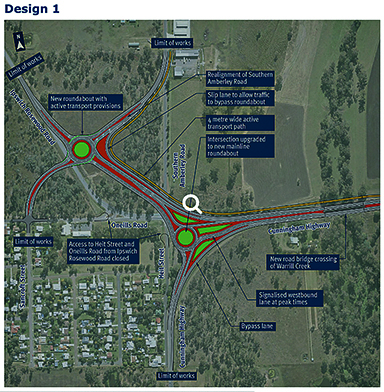 “Subsequently, in April 2020, the Australian and Queensland governments approved funding for a $1.65 million business case to establish an interim upgrade solution for the Cunningham Highway-Ipswich Rosewood Road intersection at Amberley.”