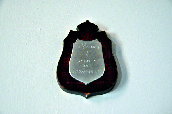The plaque hangs beside the main stage and the name, Sydney Eric Edwards is inscribed on it.