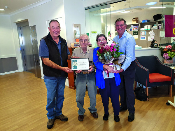 A certificate of appreciation and a bouquet of flowers was presented to the Rosewood couple after a speech of thanks for their service.