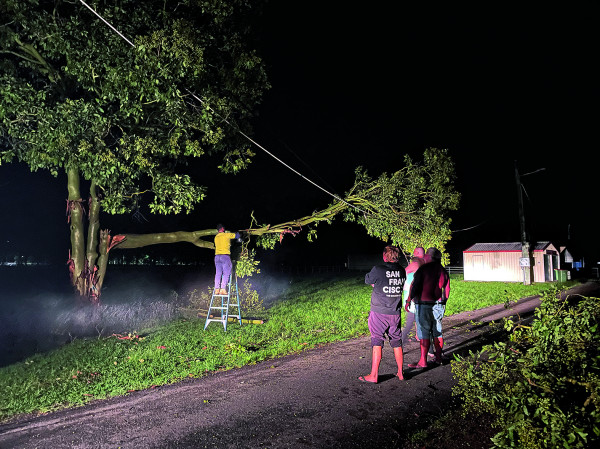 Heavy rain, cracks of thunder and flashes of lightening were quickly followed by strong winds that tore a large tree branch off a gum tree located at the top end of the grounds, near the Rosewood Pony Club shed.