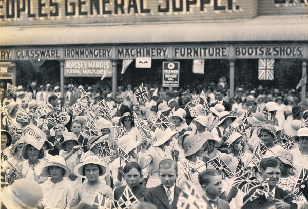“The Duke and Duchess, who were dining, leaned from their carriage and waved to the children. Through the courtesy of the Railway officials, a basket of flowers tied with the CWA colours, bearing a welcome to the Duchess from the Rosewood CWA was handed into the train. Business places near the station were decorated with flags.”