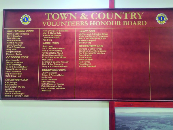 “The Lions Club of Rosewood has continued the Rosewood Town and Country Volunteers Honour Board after it was established by our former Ipswich City Council Division 10 Councilor, David Pahlke,” said Club Treasurer, Bruce Richards.