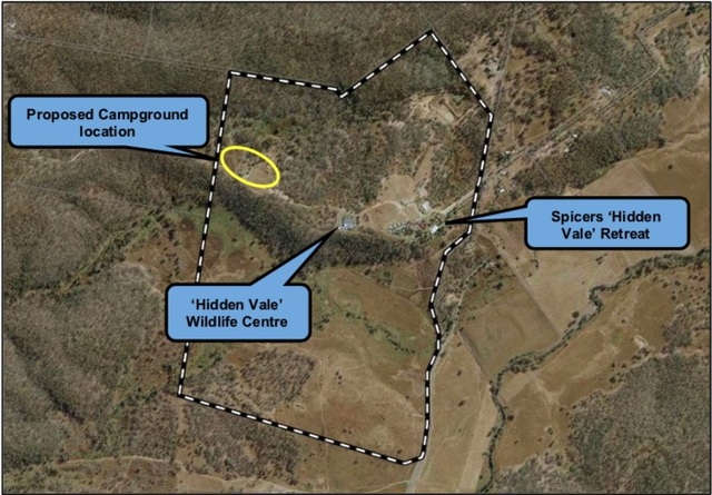 Facilities would include 41 standard and larger tent and caravan sites, eight glamping tents with ensuites, amenities buildings and a communal kitchen and kiosk on a section of the property distant from the Spicers Hidden Vale Retreat and the Hidden Vale Adventure Park.