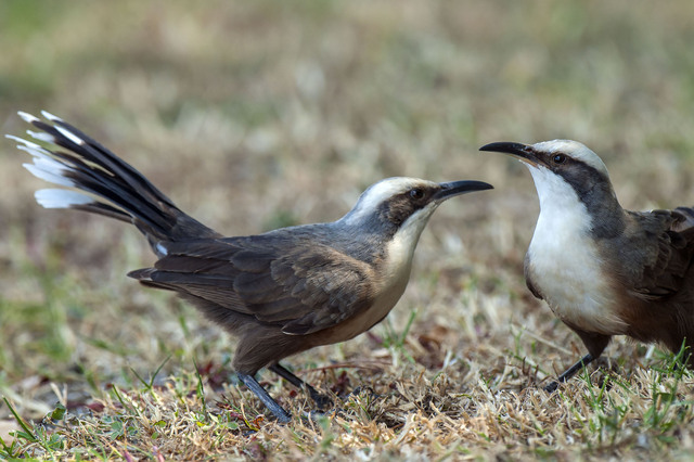 Once seen, hard to forget, these birds gather on the ground to forage, and give the appearance of playing and babbling ‘happy family’ groups. The combination of the white stripes on its head and neck, the curved bill and white tipped tail is distinctive. According to ‘Birds in Backyards’, they live and breed in co-operative territorial groups of two to fifteen birds (usually four to twelve). In the spirit of a good commune, while the group may contain only one or two breeding females, everyone helps in nest building, keeps the brooding females fed while incubating the eggs and helps with parenting.