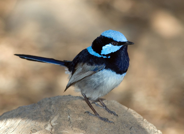 The striking blue feathers in this species are reserved for the breeding males while the markings of the females and non breeding males tend to be a mixed bags of creams and light browns. The fairy wrens are definitely in the lightweight division with an average weight of between 8g and 13g. They are active feeders in lower foliage and on open ground but always positioned close to shelter. Breeding season is a delight for the fortunate onlookers with the males offering an array of courtship flight displays and they pluck yellow petals to show to their intended mate.