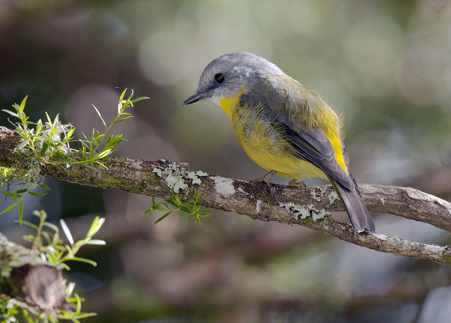 Plump with yellow breast feathers offset by soft, grey-blue feathers on head and wings, the yellow robin is mainly found in treed areas as well as parks and gardens. It perches in branches and does a fast drop to the ground to capture insects. Its genus name translates from the Latin to ‘dawn harper’ as it is often the first bird to be heard at the beginning of the day. According to the Australian Museum, breeding pairs may lay up to three clutches of eggs, but parenting duties from home building to feeding is solely the purview of the female.