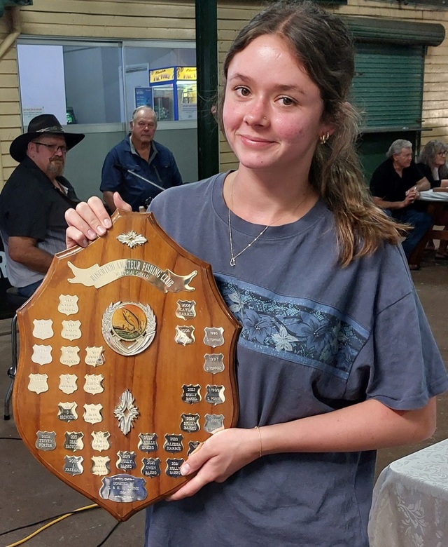 The Dean Browning Memorial shield, for the heaviest Yellow belly caught at the Glenlyon Dam ,long weekend trip, went to a Junior Holly Bazzo.